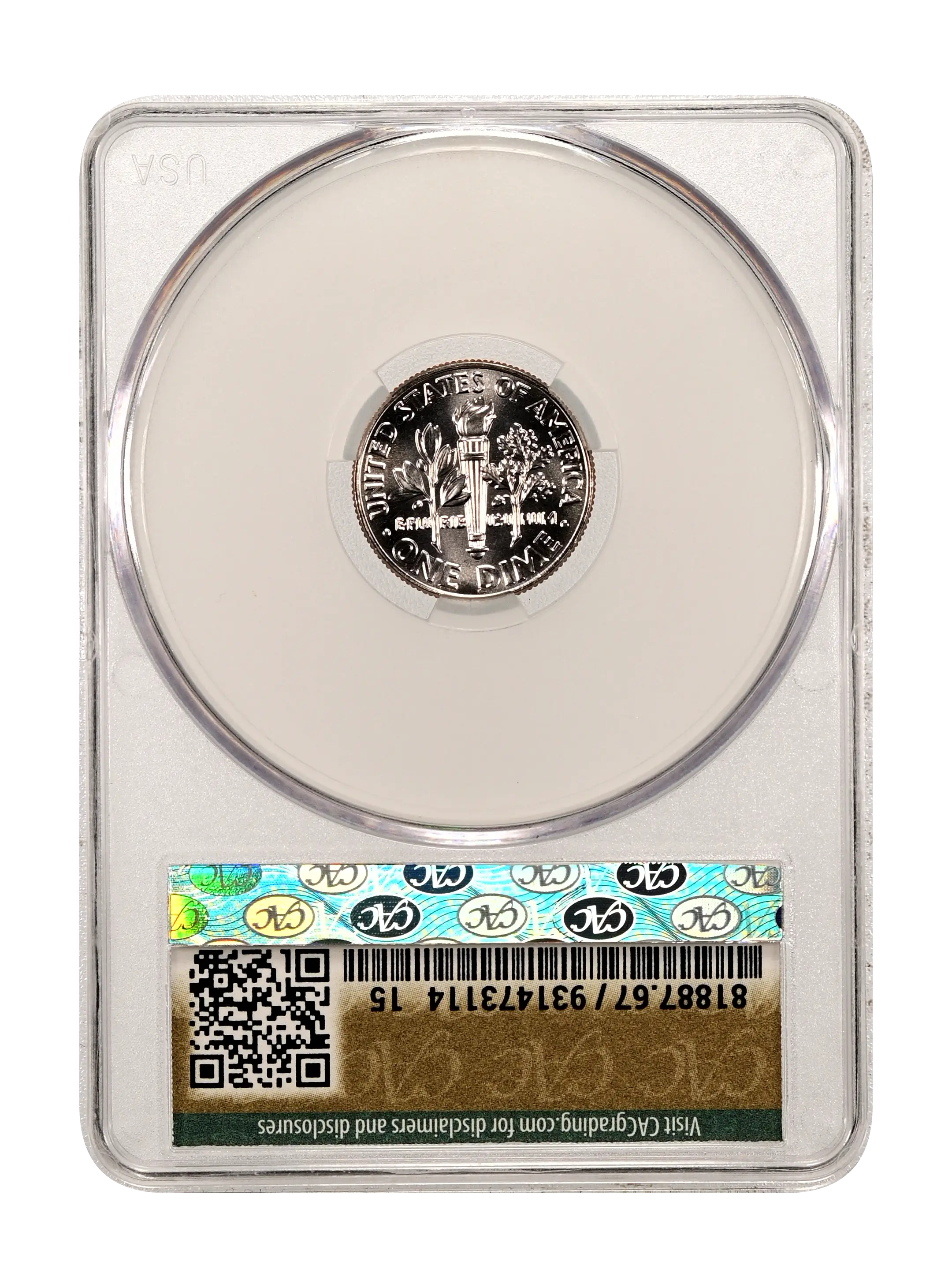 Reverse: Torch of Liberty is flanked by olive branches in the center with UNITED STATES OF AMERICA * ONE DIME around the circumference.