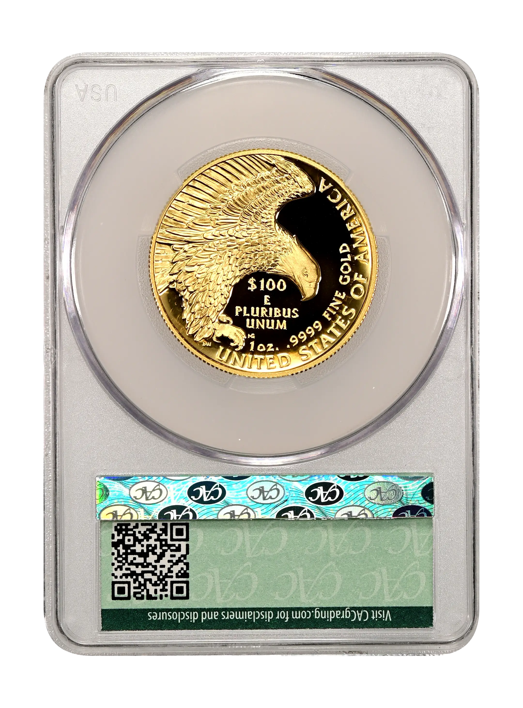 2019-W $100 High Relief One-Ounce Gold, Enhanced Finish, SP70 Ultra Cameo NGC. Authentic Hand-Signed autograph of 38th U.S....