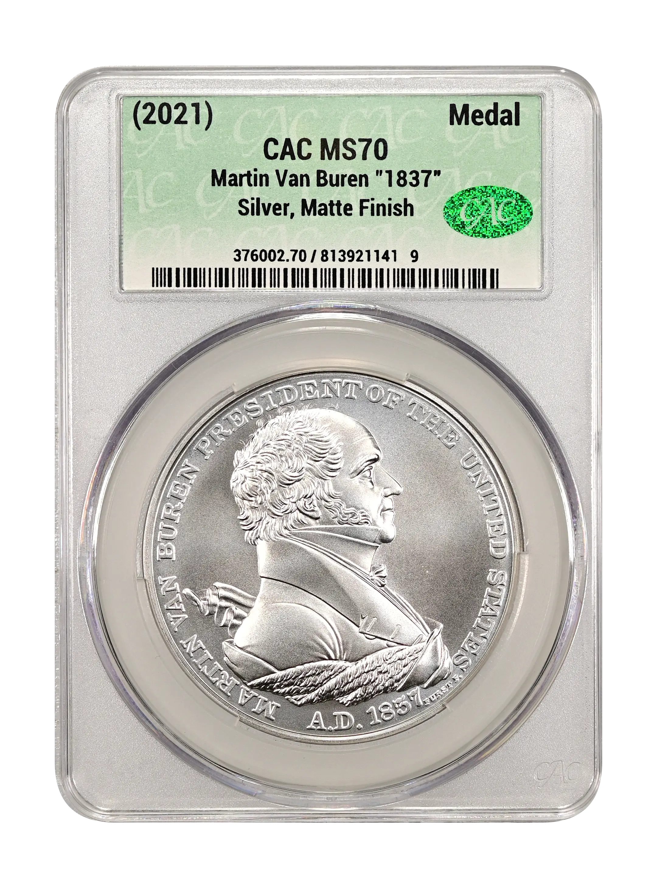 (2021) Martin Van Buren "1837" Medal Silver, Matte Finish CAC MS70