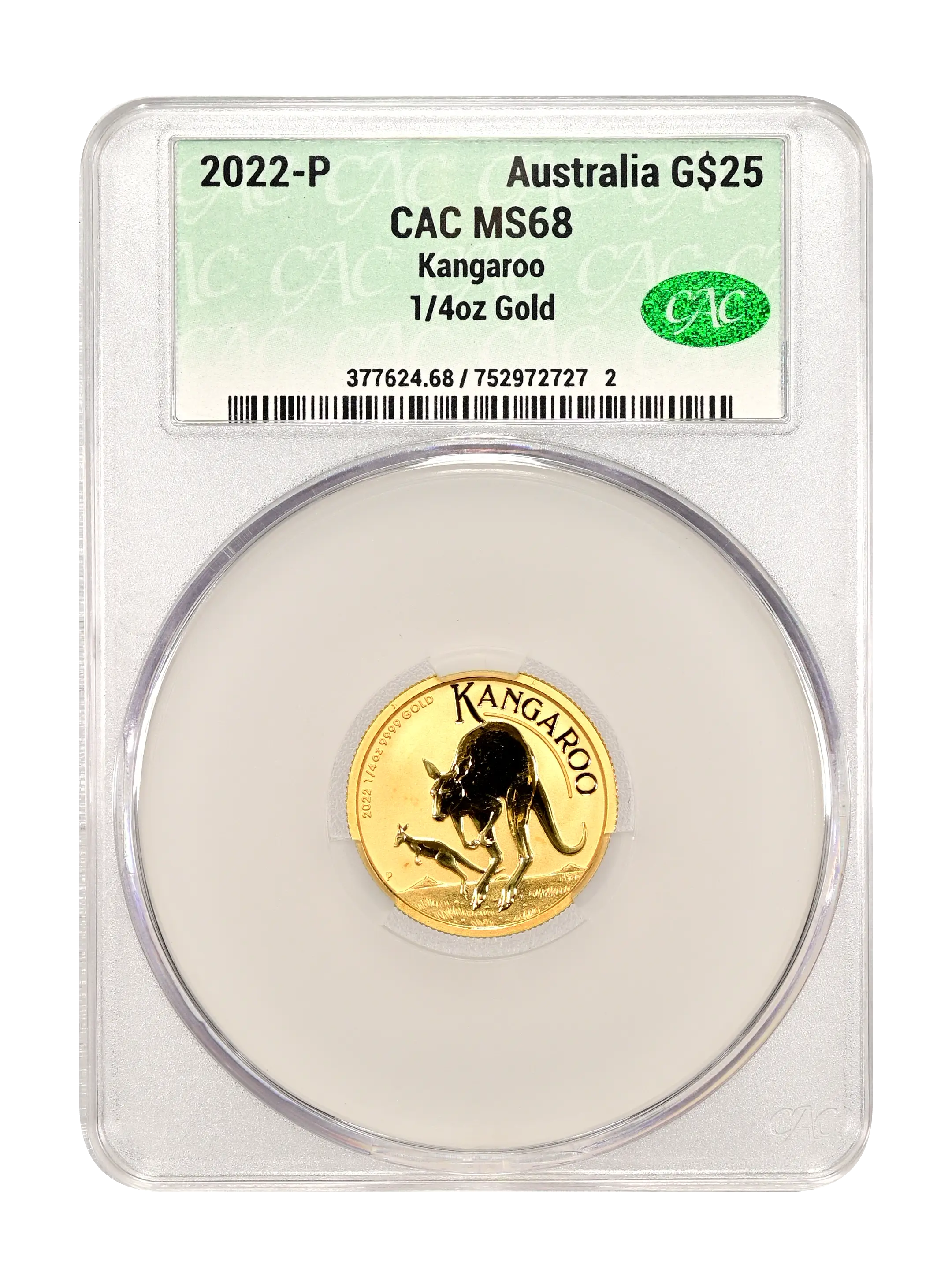 2022-P Kangaroo Australia G$25 1/4oz Gold CAC MS68