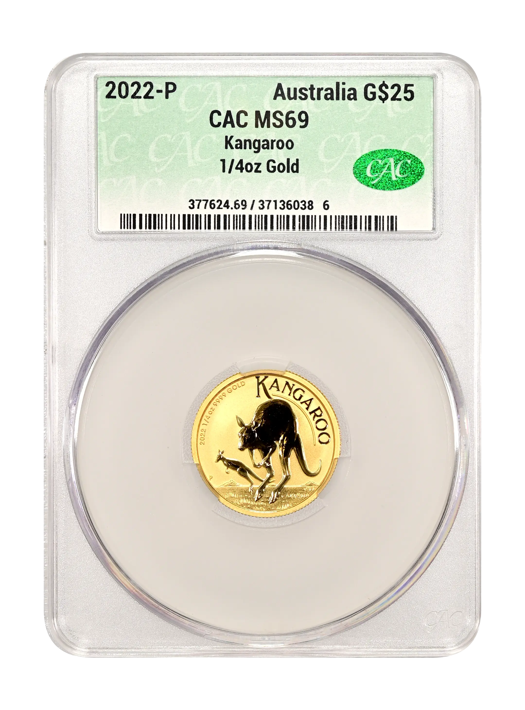 2022-P Kangaroo Australia G$25 1/4oz Gold CAC MS69
