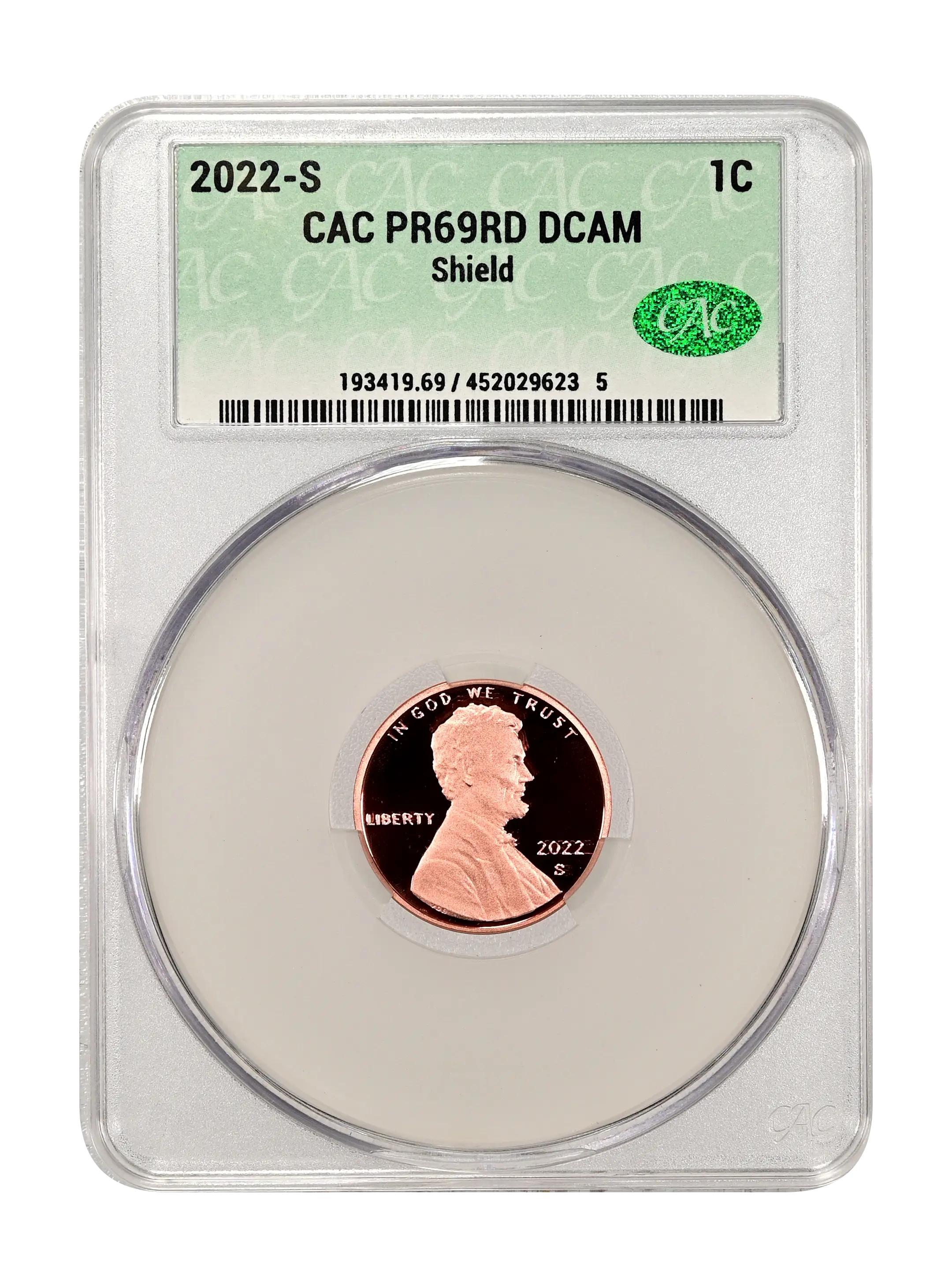 2022-S Shield 1c RD DCAM (Proof) CAC PR69RD DCAM