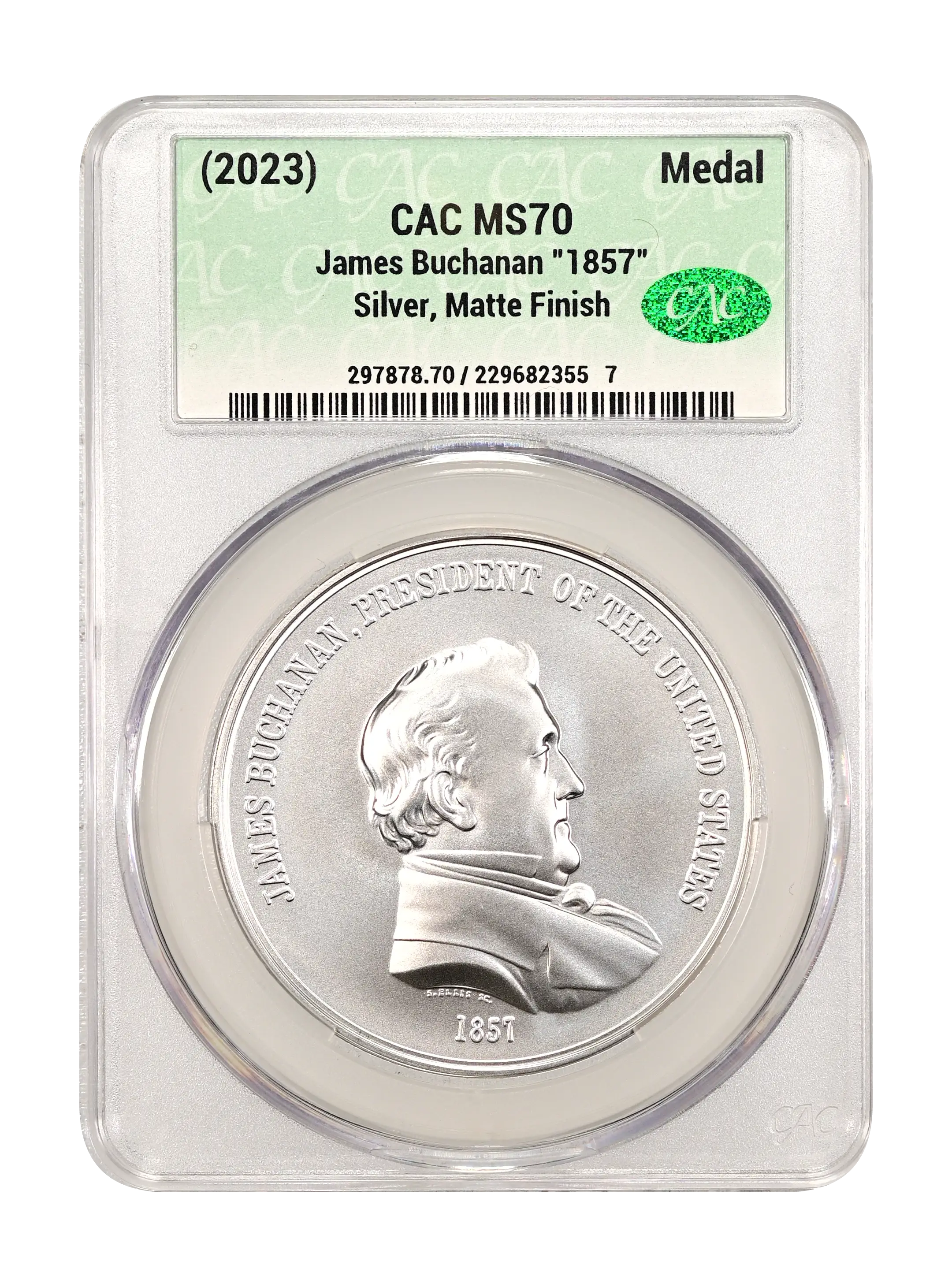 (2023) James Buchanan "1857" Medal Silver, Matte Finish CAC MS70