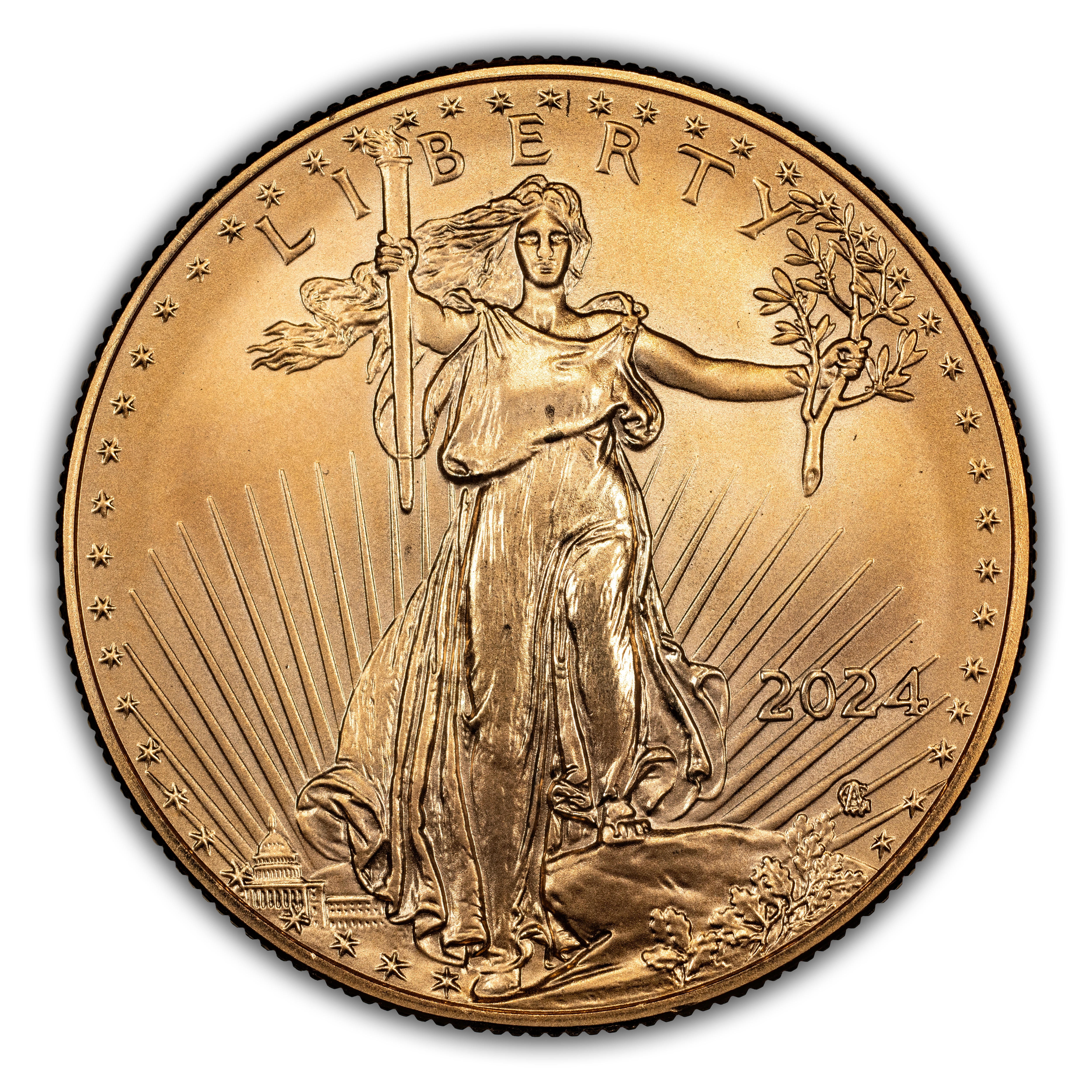 Very popular one ounce bullion gold coin. The majority of these were struck at the West Point Mint facility without a mint mark on the coin. In rare cases, the other mints located in Philadelphia, Denver or San Francisco can be used to strike coins, but they are indistinguishable from the West Point strikings.