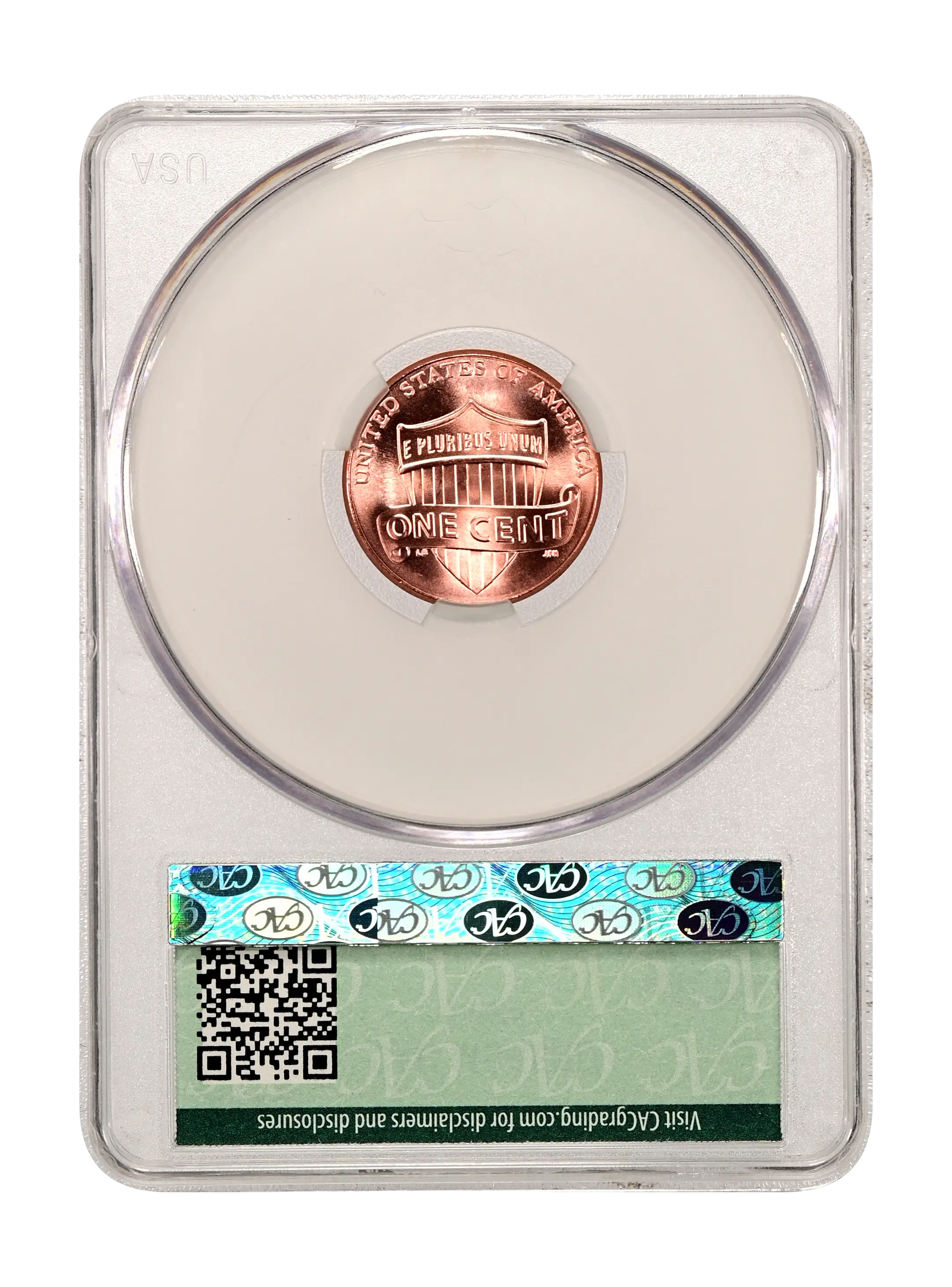 Reverse: A shield with the words E PLURIBUS UNUM is centered with the words UNITED STATES OF AMERICA on the top periphery and ONE cent in a ribbon across the shield.