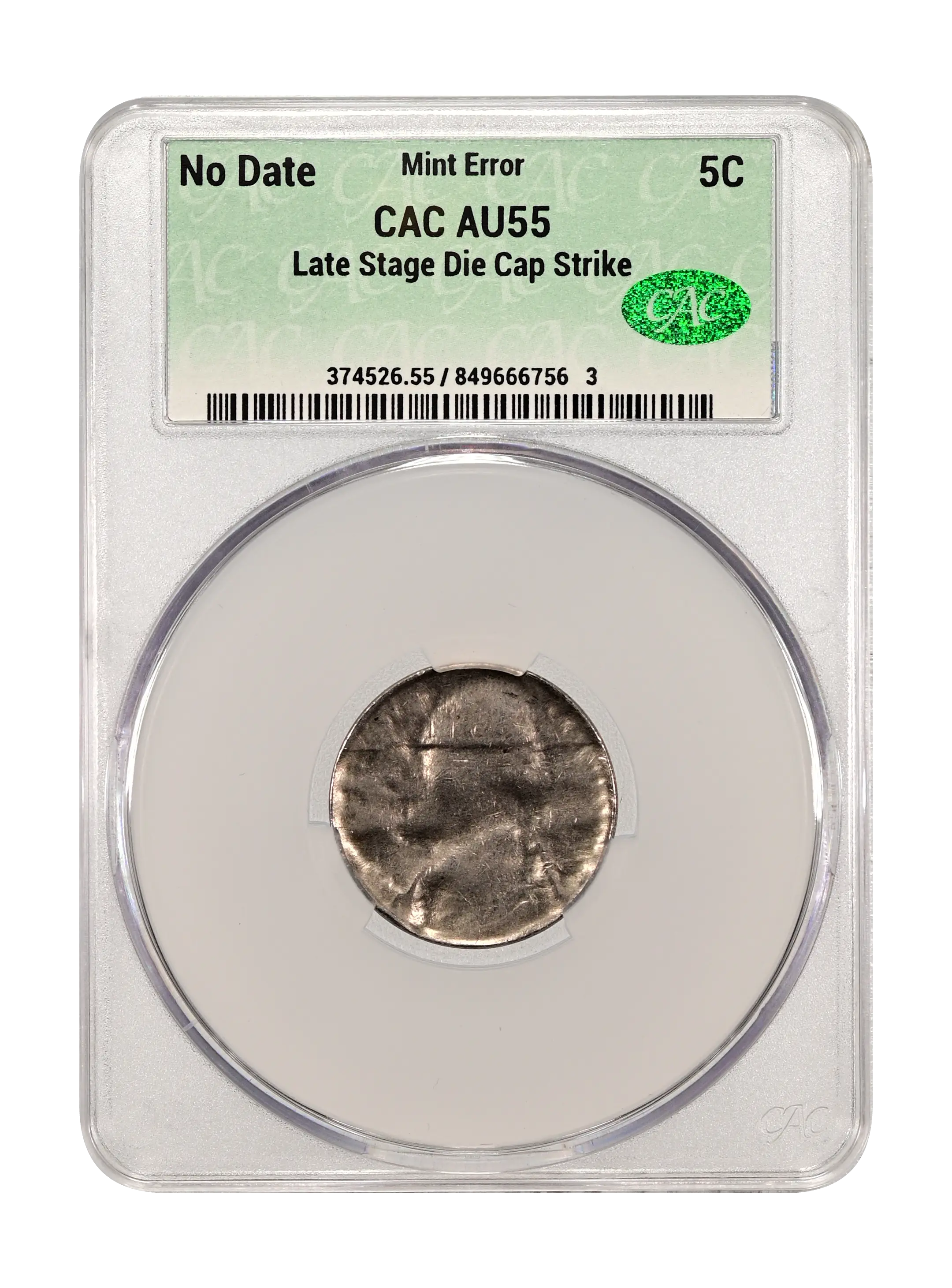Jefferson Nickel 1938-2003 5c [No Date] CAC AU55