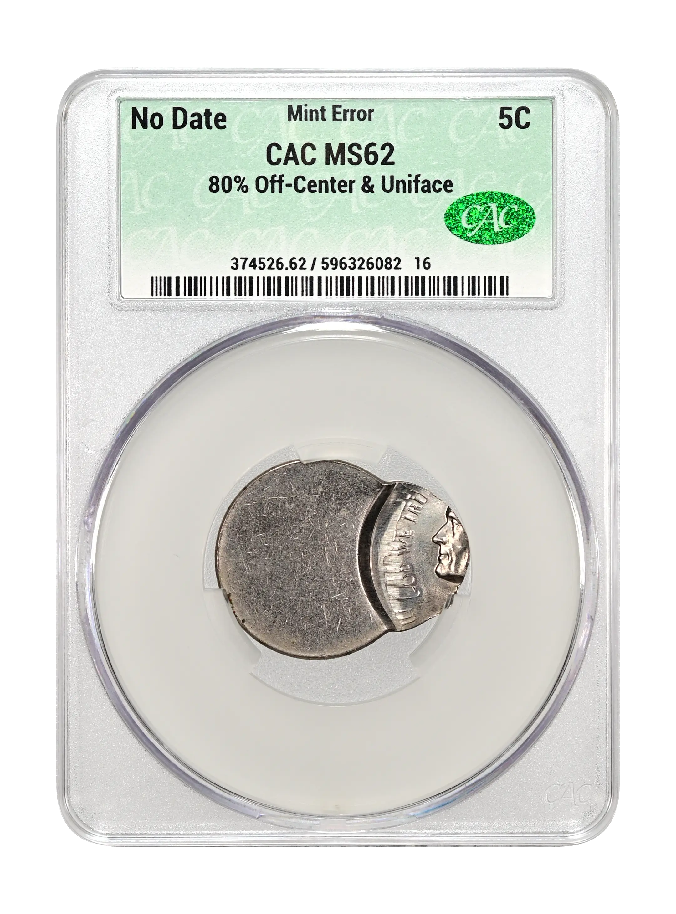 Jefferson Nickel 1938-2003 5c [No Date] CAC MS62