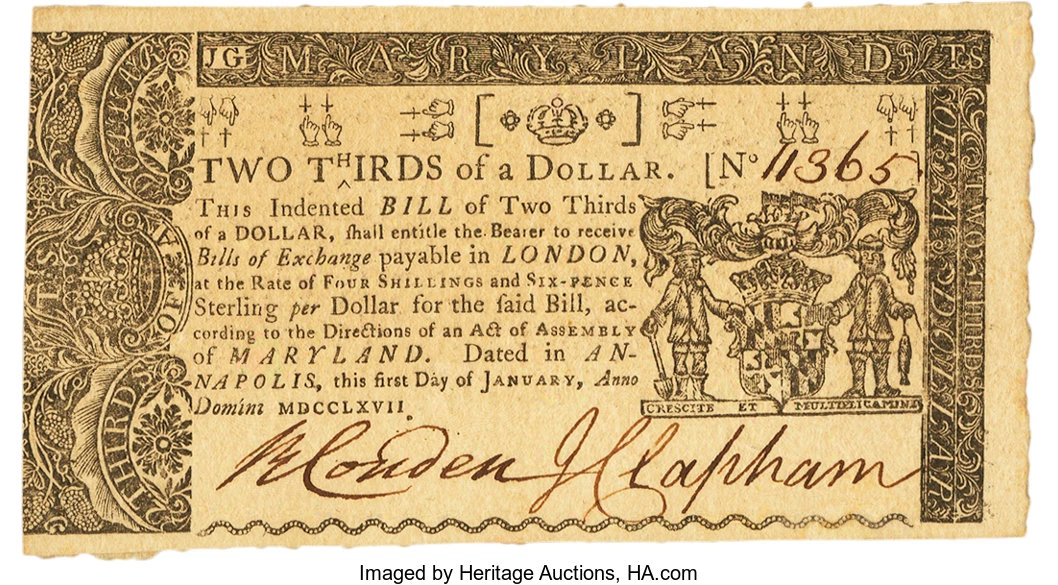 Mar 1, 1770 Maryland $2/3 PMG AU53 (Fr. MD54)