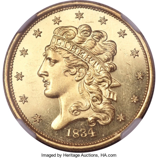$5 Classic Head Gold, Proof (1834–1838) Values