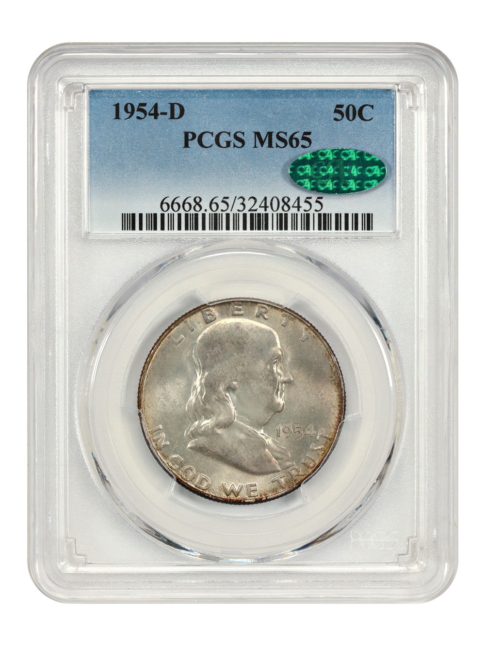Starting in 2023, we have created separate pricing categories for Franklin half dollars that are toned (colored surfaces) vs. pure white surfaces. Unless a coin has spectacular toning, there is usually a significant premium for coins that are pure white, due to collector preference.