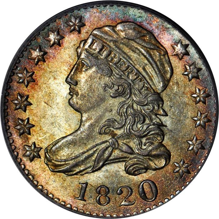 Capped Bust dimes, designed by John Reich, are generally more common than the Draped Bust issues. However, like their earlier counterparts they are challenging to locate in the better Mint States grades. The 1822 and 1829 Curl Base 2 are the rarest issues, with both regularly trading in the four-figure range.