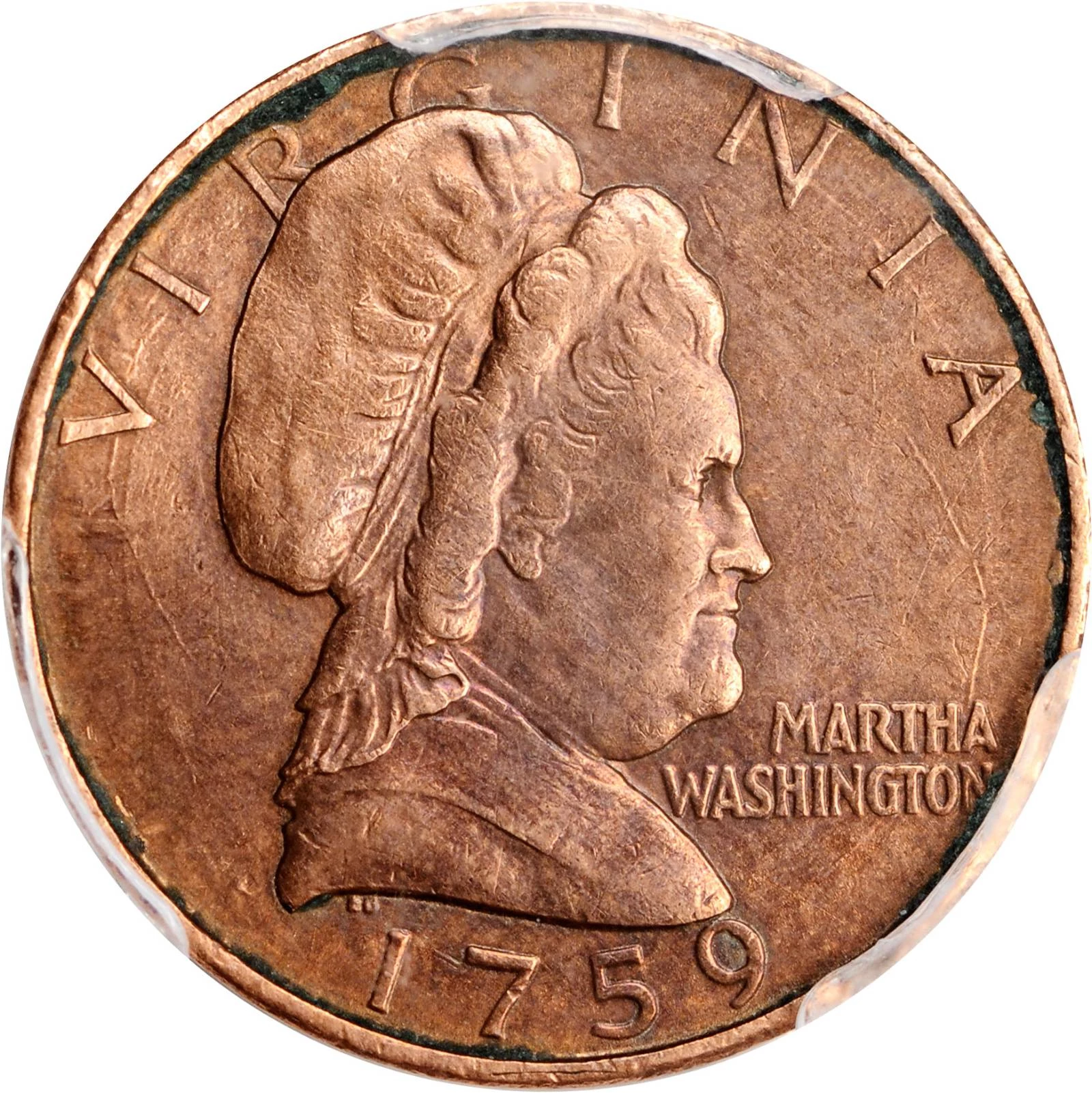 In 1982, the Martha Washington fantasy design used in 1965 was employed to test a new composition for the cent coinage before there was a change from bronze to copper-coated zinc. Seemingly, these dies were used within the Mint and also by private entities to test various concepts. These have been tentatively attributed to 1982 but may have been made at other times as well.