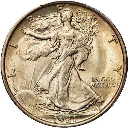 While most Walking Liberty half dollars are highly common and affordable, especially in the lower circulated grades, there are several scarce dates that command significant premiums. These include all 1916 Walking Liberty half dollars (from the Philadelphia, Denver, and San Francisco Mints), 1917-D and 1917-S obverse mintmark half dollars, 1919-D, all 1921 halves (Philadelphia, Denver, and San Francisco), and 1938-D Walking Liberty half dollar. Also scarce are all Walking Liberty half dollars minted before 1934 in grades of XF40 or better. All pre-1934 Walking half dollars grading in MS65 or higher are rare.